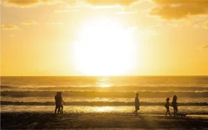底地(すくじ)ビーチは遠浅で波も穏やかなビーチです。石垣島で1番安全にマリンアクティビティを楽しむことができるスポットでもあります。夕日も夜景も綺麗ですので、1日中、底地ビーチの違う顔を見ながらゆったりと過ごすなんてこともいいですね。遊泳可能期間は浮き輪などレンタルやSUPなどのマリンアクティビティもあるので、ファミリーで行っても楽しむことができるでしょう。